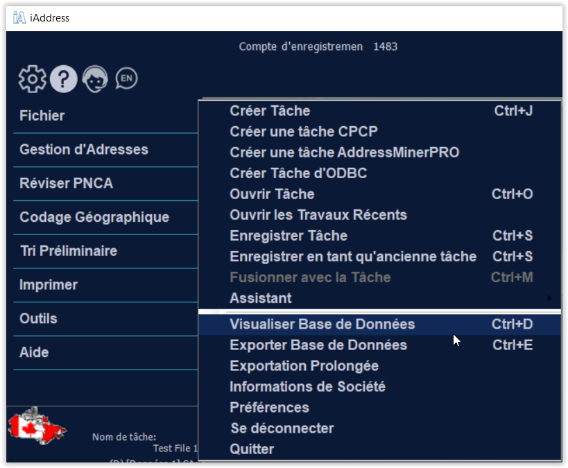 Pour afficher les résultats du géocodage, cliquez sur l’option « Afficher la base de données » dans le menu « Fichier ».